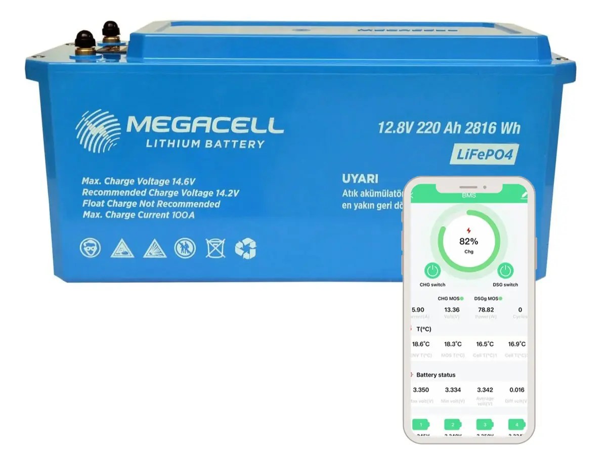 MEGACELL 12.8V – 220Ah – Bluetooth LiFePO4 Lityum Akü