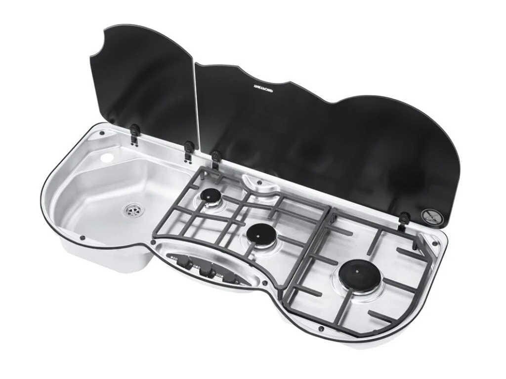 Thetford 353 Cam Kapaklı 3 Gözlü Karavan Ocak Evye Kombinasyonu, tekne ve karavan kullanıcıları için mükemmel bir mutfak çözümüdür. Hem pişirme, hem de temizlik işlemlerini aynı ünitede gerçekleştirebilirsiniz.